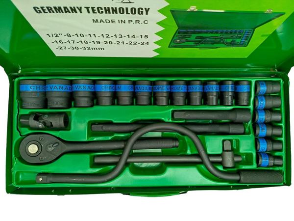 JUEGO DE COPAS Y RACHET DE 24 PIEZAS VANADIO CROMADO 1/2″