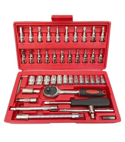 JUEGO DE COPAS Y RACHET DE 46 PIEZAS VANADIO CROMADO 1/4″