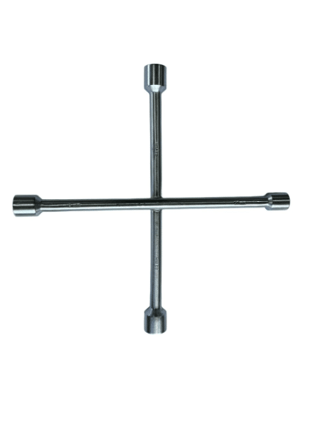Cruceta para automóvil galvanizada con acero especial. Es altamente resistente a cantidades de fuerza para dar precisión al aflojar. Sus bases o copas son de excelente diseño, este tipo de herramienta es ideal para desmontar neumáticos de automóviles, apretar cualquier clase de pernos y aflojar las tuercas de los rines. Es práctica para cambio de rines o llantas, ya que ocupa muy poco espacio y es fácil de llevar.