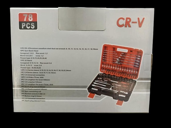 Juego de copas, llaves y rachet 78pcs 1/2″ 1/4″ vanadio cromado