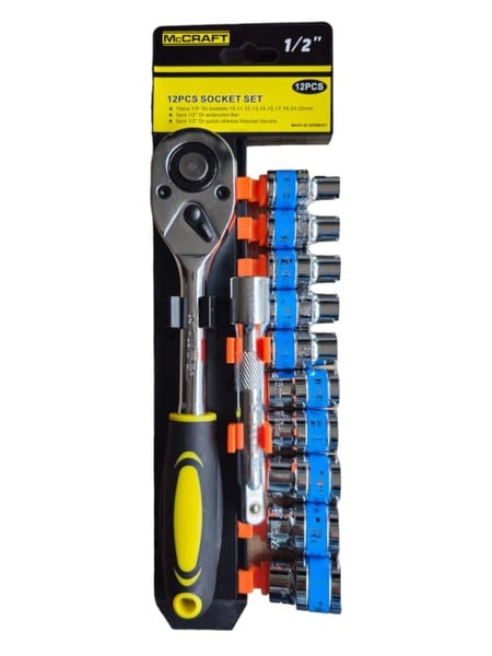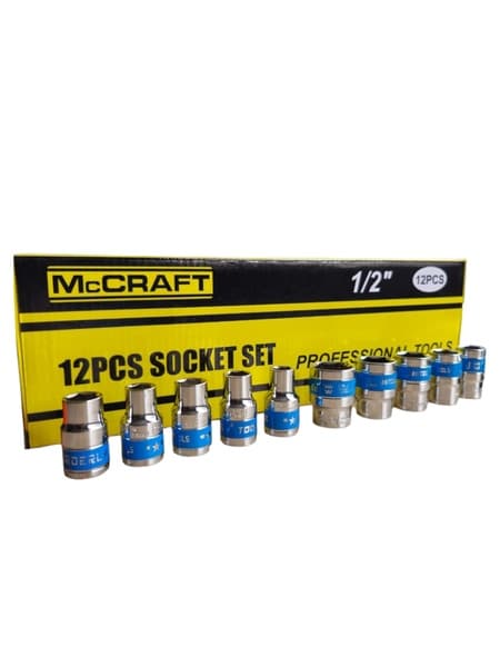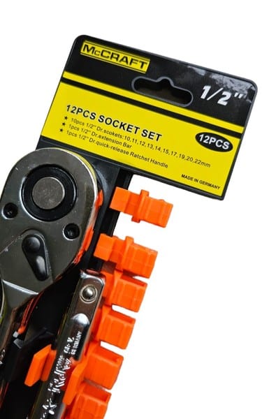 Juego de copas y rachet 12pcs 1/2″ vanadio cromado.
