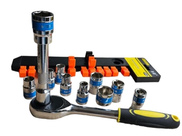Juego de copas y rachet 12pcs 1/2″ vanadio cromado