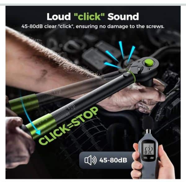Estas llaves dinamométricas se han actualizado para tener un sonido más fuerte de «clic». Realizamos más de 25,000 pruebas para garantizar que cada producto produzca un volumen de sonido de clic de no menos de 45 dB cuando el valor de par excede 34 lbf·ft. Cuando escucha el sonido de clic distinto, indica que se ha alcanzado el par preestablecido, lo que le indica que deje de aplicar fuerza. Ya no tienes que preocuparte por dañar tus componentes mecánicos.